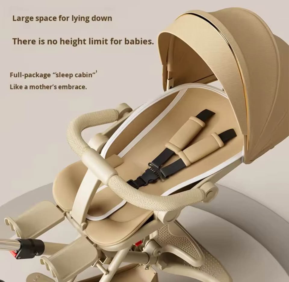 Maximum Safety & Comfort: Features a secure 5-point safety harness, a multi-position reclining backrest, and an adjustable sun canopy to protect against the elements.